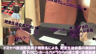 【●100▲100】ドスケベ放送部員男子複数名による、廻里生徒会長の演説時真下のピンホールカメラからの逆さ撮り盗撮動画ライブ鑑賞の様子(Vo...